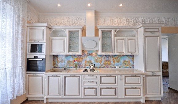 Сочетаемость с другими оттенками. При желании бежевые поверхности можно декорировать контрастными вставками, рисунками и узорами. К тому же кухонная мебель в таком цвете прекрасно дополнит остальные элементы интерьера.