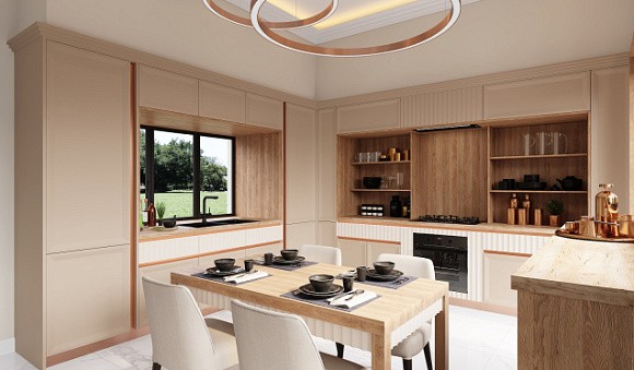 Широкий ассортимент. Производители предлагают кухни в бежевых тонах в разных стилях – классика,сканди, хай-тек, модерн, лофт, неоклассика и арт-деко.