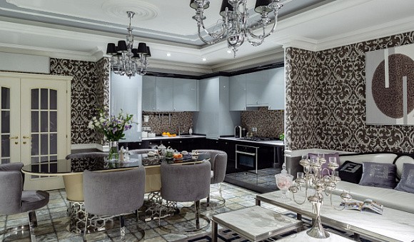 Кухни с островом. Островные модели часто используются в просторных квартирах-студиях. С их помощью можно отделить обеденную зону от гостиной. При этом дополнительный элемент часто используется в качестве рабочей зоны или вместо привычного стола.