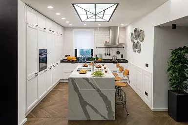 - Кроме того, шпонированные фасады демонстрируют высокую устойчивость к внешним факторам и легко поддаются реставрации. Небольшие царапины можно без труда зашлифовать, а крупные дефекты скрыть с помощью шпоновой заплатки, что позволит кухне сохранить безупречный внешний вид на протяжении долгого времени.