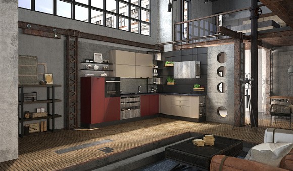 Кухни лофт. Данный дизайн предполагает использование разных материалов – от натурального дерева и качественного МДФ до прочного пластика. При этом пластиковые элементы отмываются любыми неагрессивными средствами и мягкими губками. МДФ не любит влаги, поэтому протирается хорошо отжатыми салфетками из ткани. Жирные пятна с фасадов удаляются при помощи обычного средства для посуды.