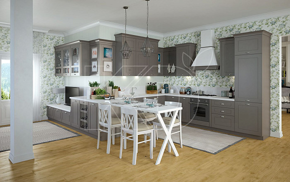 Чтобы выбранная модель максимально гармонично встроилась в интерьер, продумайте дизайн кухонного помещения. Он не должен конфликтовать с концепцией гарнитура. Кухня прованс с барной стойкой не потерпит яркого фона, поэтому откажитесь от идеи декорировать стены обоями с аляповатыми рисунками. Подходящий вариант – полностью однотонные поверхности или с декором в виде мелких растительных узоров.
