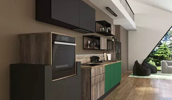 Чтобы кухонный гарнитур зеленого цвета идеально вписался в интерьер, учитывайте его планировку и размеры помещения. Например, прямая кухня подойдет для небольшого пространства, так как не займет много места.