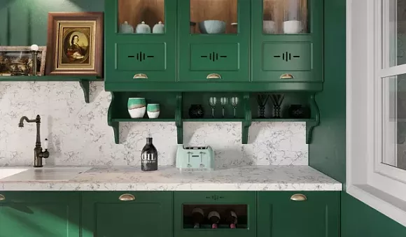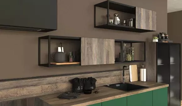 Особенности производства зеленых кухонных гарнитуров