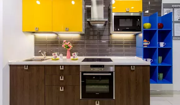 Увидеть желтый кухонный гарнитур нашего производства вы сможете, открыв каталог кухонь на сайте. Здесь же можно ознакомиться с отзывами заказчиков бренда. При необходимости наши специалисты разработают для вас дизайн-проект кухни на заказ по индивидуальным замерам. В этом случае будут учтены архитектурные особенности кухонного помещения, ваши пожелания относительно планировки, наполнения и дизайна.