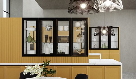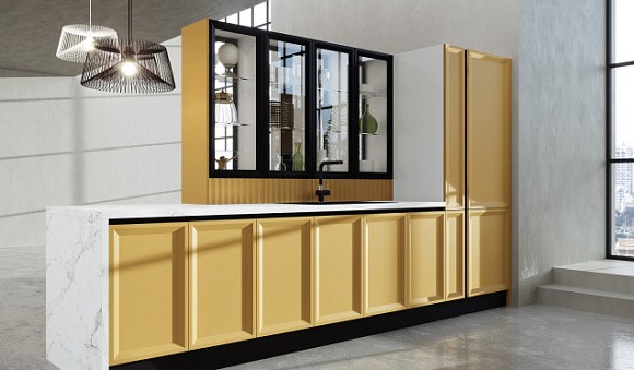 • Широкий ассортимент. Производители выпускают разные кухни в желтых цветах – лофт, кантри, неоклассика, модерн, сканди, хай-тек, арт-деко.